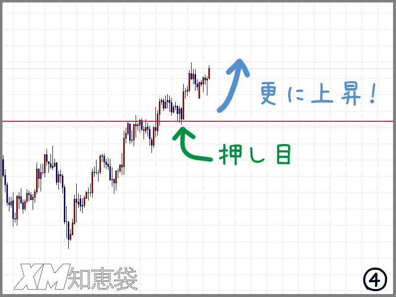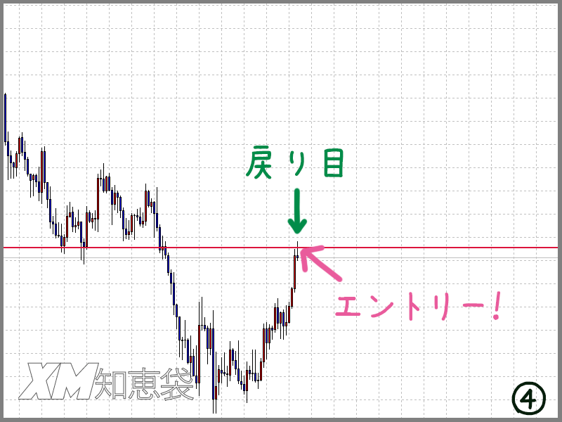 実際に押し目・戻り目を使ってエントリーした時の様子をスライドにしたので、下の画像をみてみましょう!