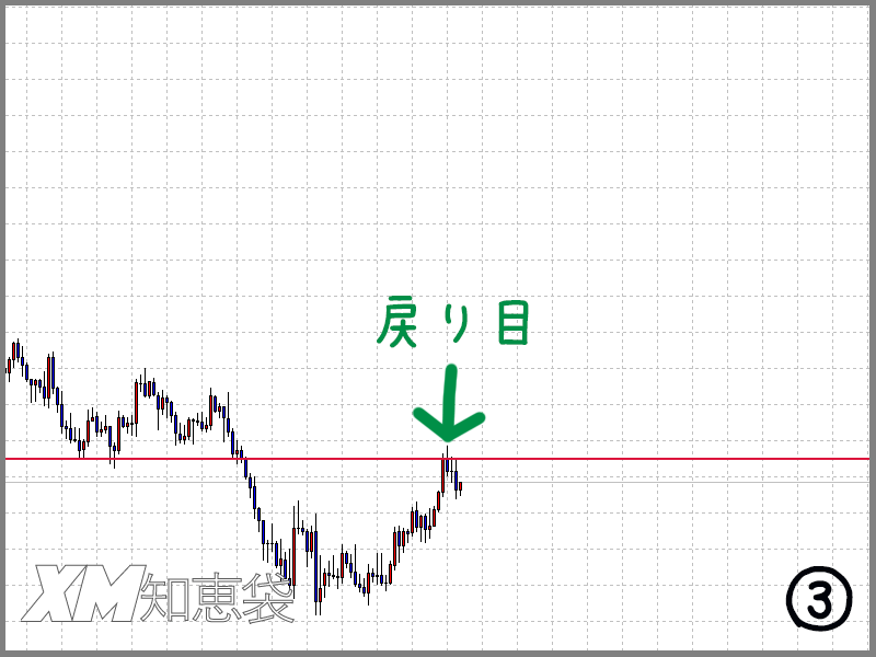 押し目の逆となる戻り目は、下降しているトレンドの中で一時的に価格が上がる場所のことです。