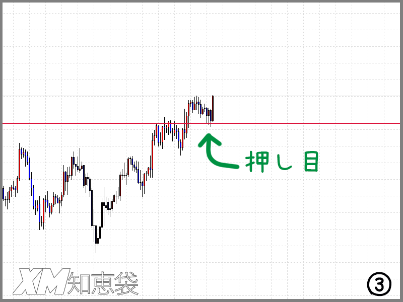 • 押し目(戻り目)…一度ブレイクアウトした後に少し下がったらエントリー
